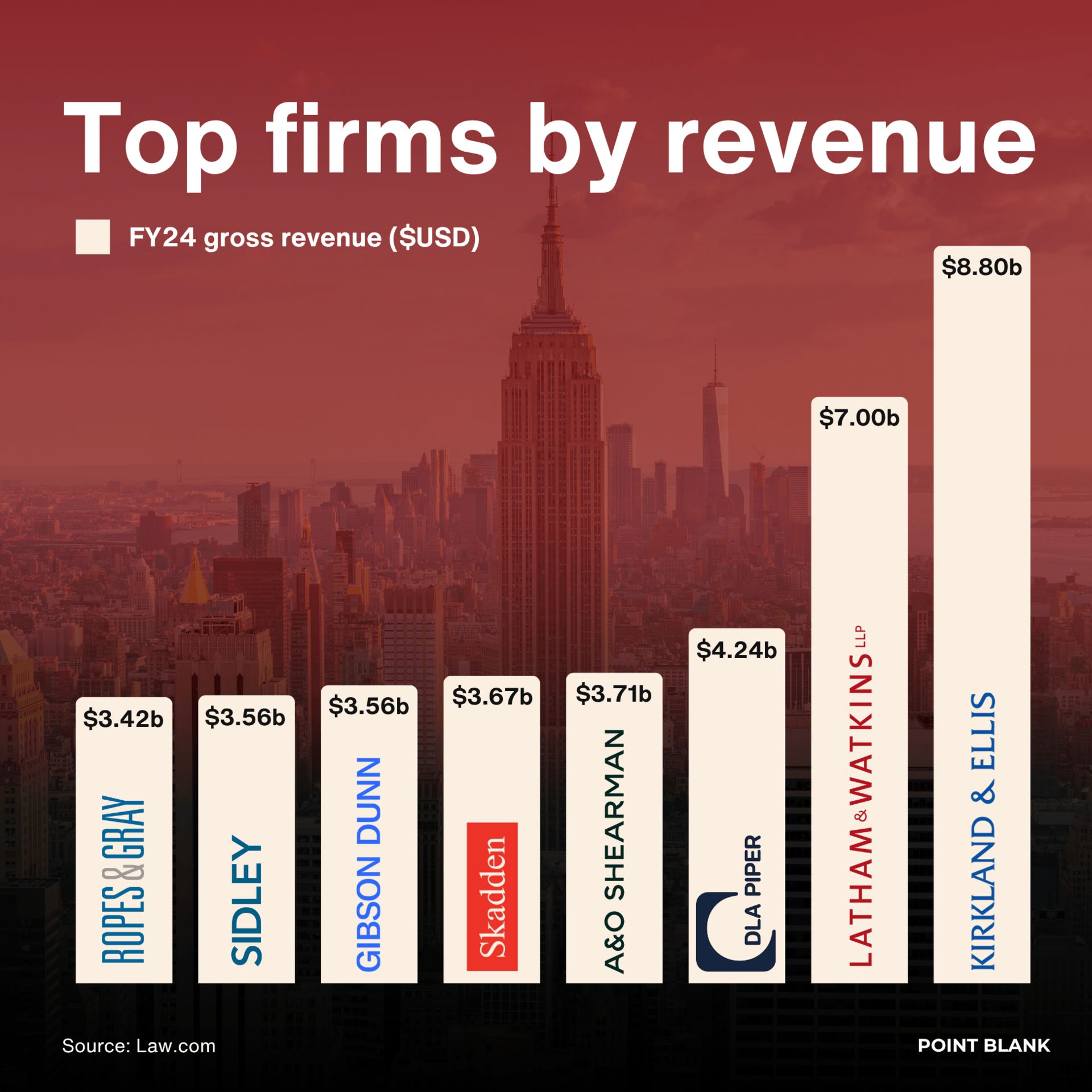 It’s winner-take-all at the top. Global 200 data shows total Big Law revenue jumped 11.8%, but the top 10 firms now control almost 20% of the global pie. Kirkland & Ellis leads with US$8.8b, ahead of Latham & Watkins (US$7b) and DLA Piper (US$4.2b). Check out the full article here: Point Blank