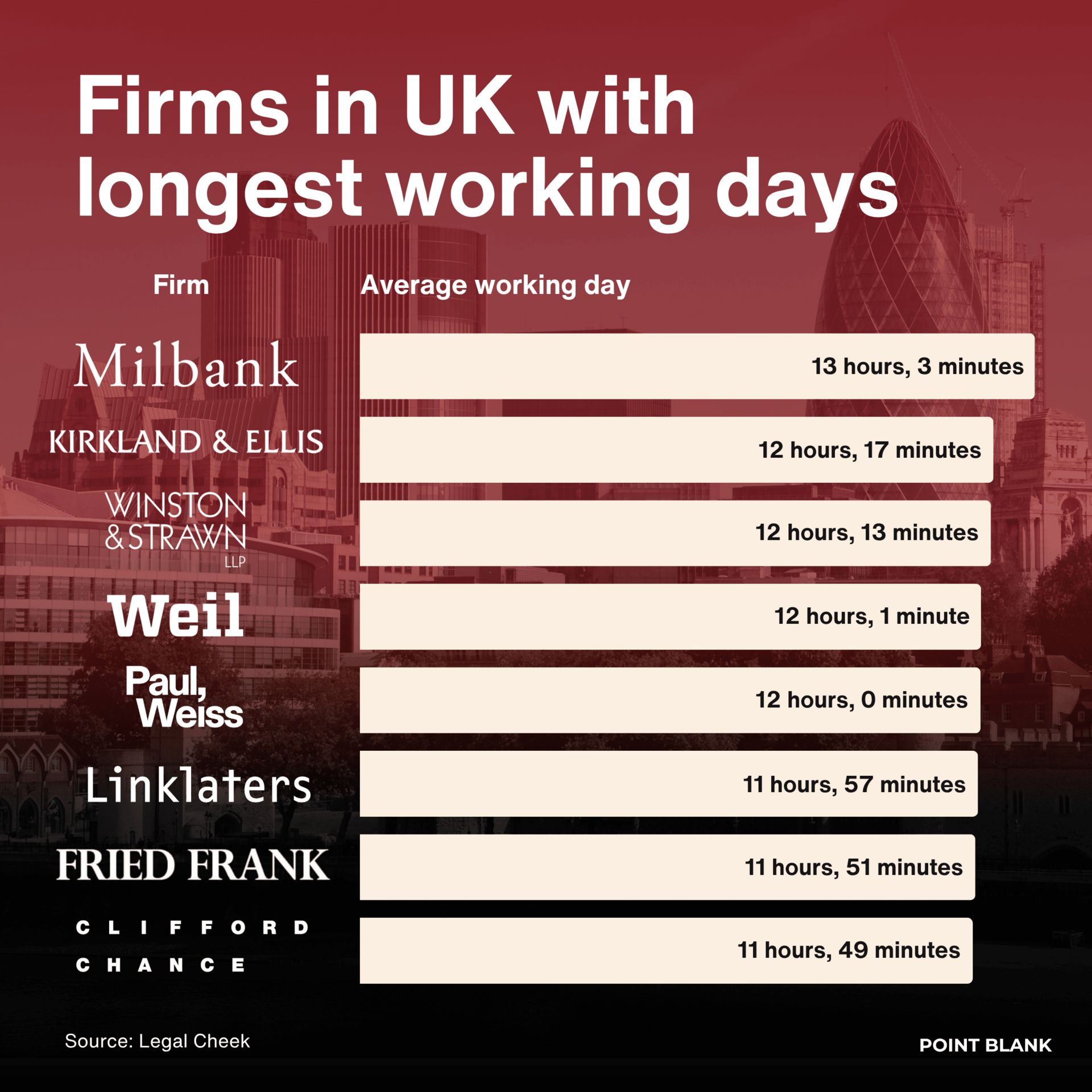 Milbank tops London’s long-hour league, with juniors clocking 13-hour days— starting at 9:03am and leaving at 10:06pm. Kirkland & Ellis and Winston & Strawn follow close behind on 12-hour averages, with Weil, Paul Weiss and Linklaters rounding out the top six. Fourteen firms now finish 9pm or later, as burnout deepens despite record £180k NQ pay. Check out the full breakdown here: Point Blank